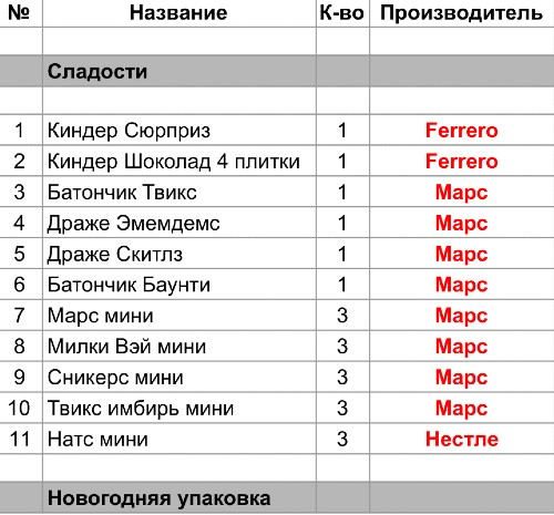 1. Проверить, можно ли внести изменения в состав подарка. Если нет, то скорее всего наборы были собраны еще летом из конфет, произведенных еще раньше